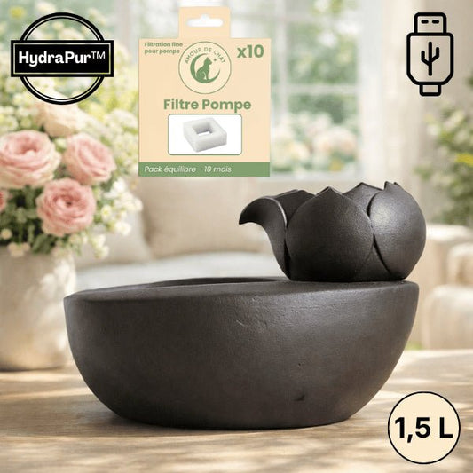 Fontaine à eau chat céramique lotus design zen - HydraPur™