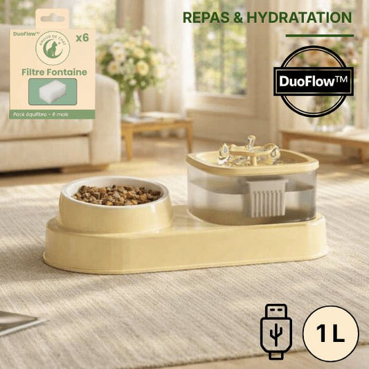Fontaine à eau chat et gamelle croquettes - DuoFlow™