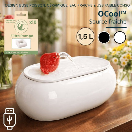 Fontaine à eau pour chat céramique ovale buse poisson - OCool™