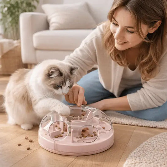 | Distributeur de croquettes ludique WhirlCatFeeder™ | Plastique ABS + TPR | ~300-400g | Manuelle (rotatif interactif) | Stimulation mentale, mangeoire lente, réduit anxiété et ennui, solide et lavable | 31,90 € |